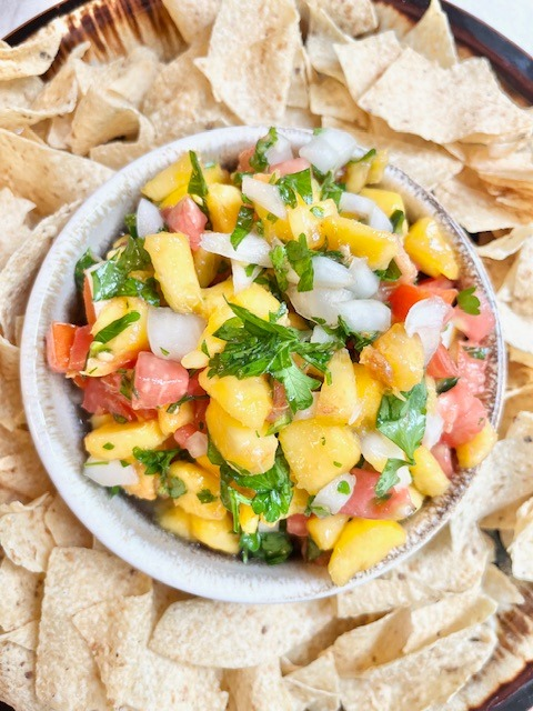 Is there anything better than a good salsa recipe? This peach salsa is so versatile you will be using it multiple times a week but in different dishes! Peach salsa is great with tortilla chips, oven baked fish, and even grilled chicken.